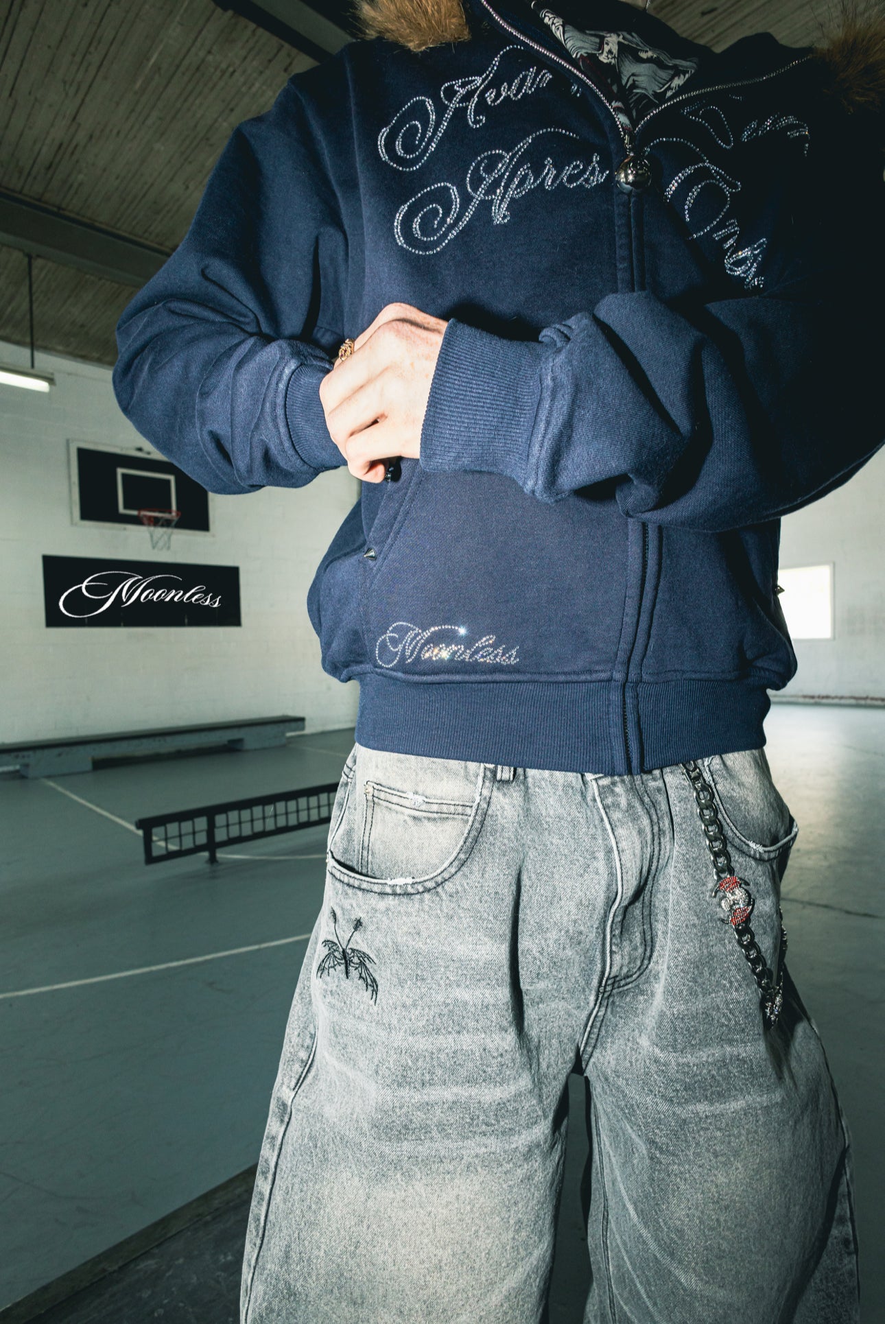NAVY- BEFORE LIGHT/AFTER SHADOW - Zip-Up/Detachable White Fur