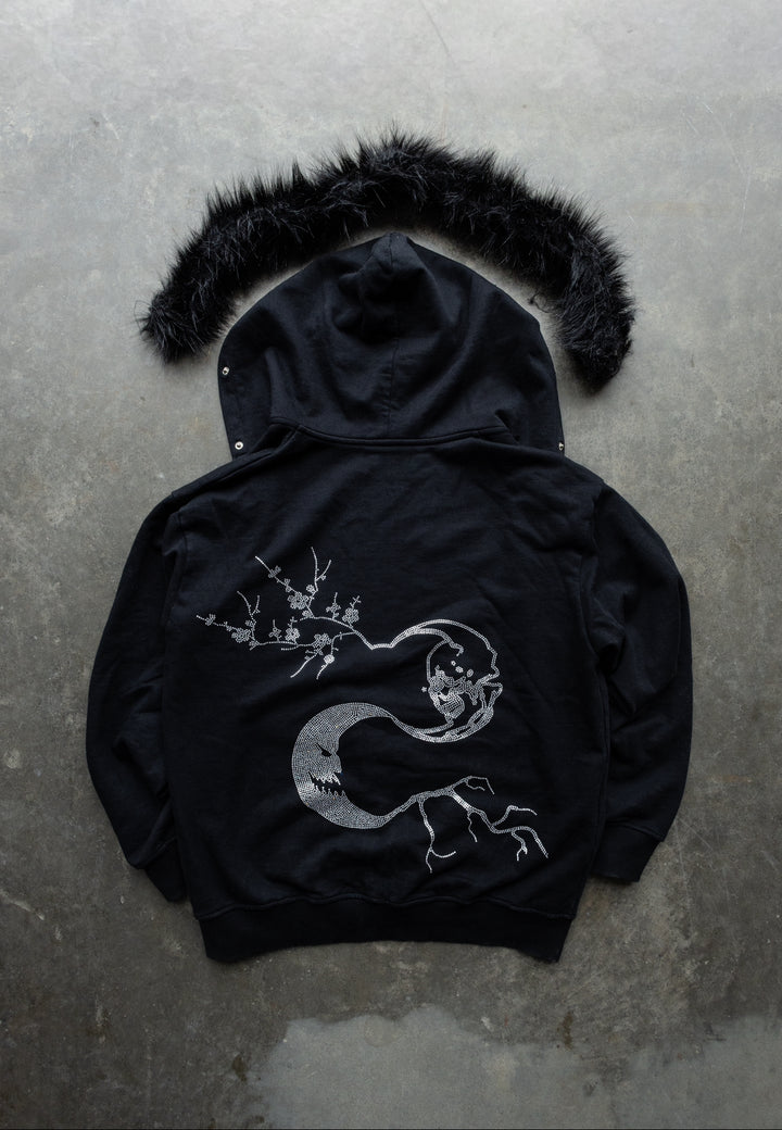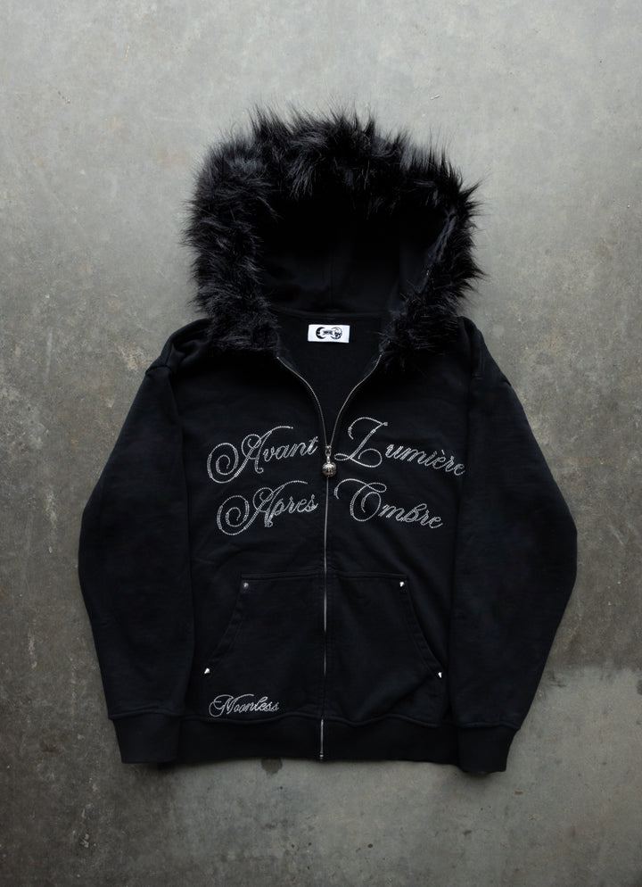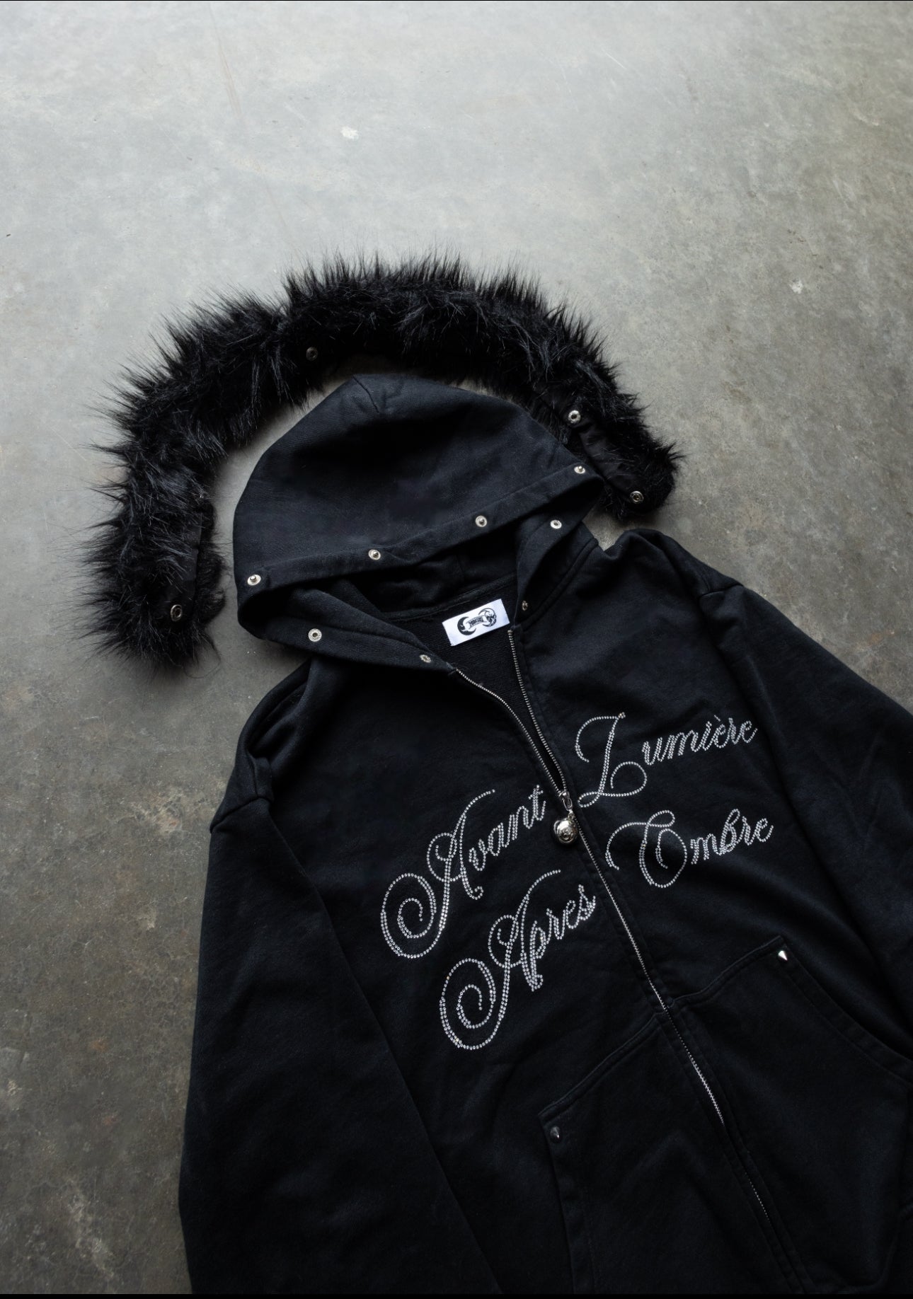 BEFORE LIGHT/AFTER SHADOW. Black Zip-Up/Detachable Black Fur