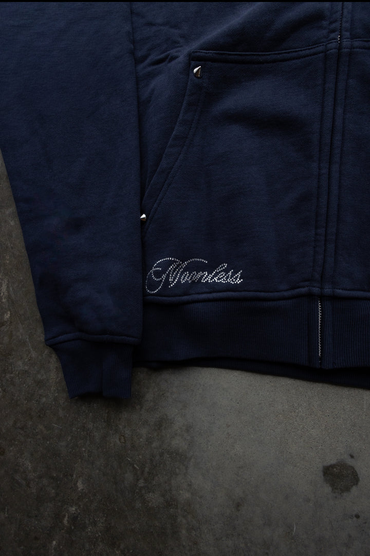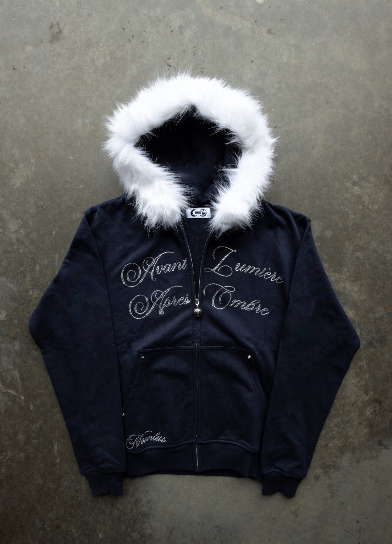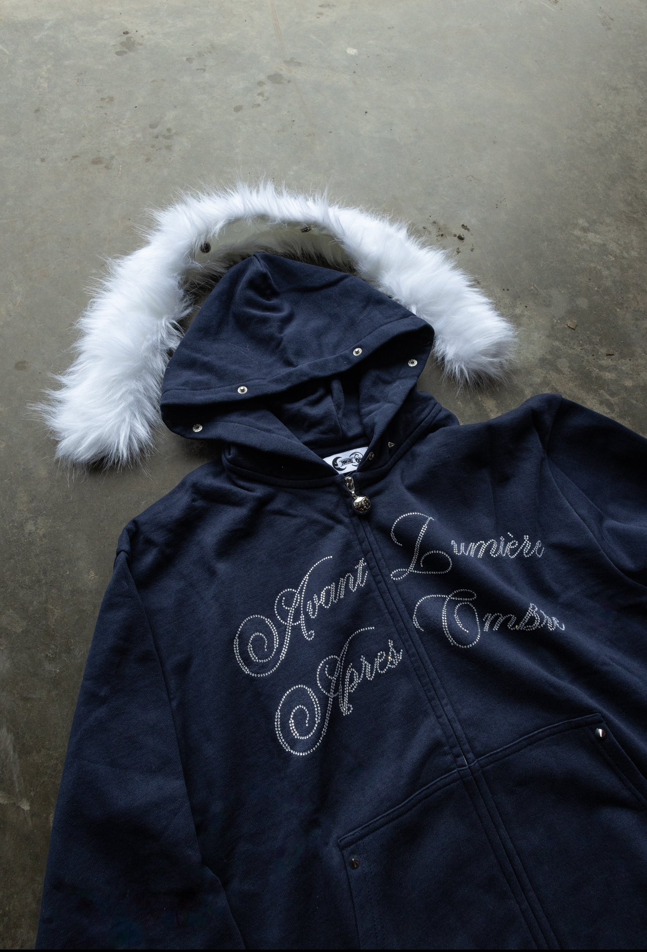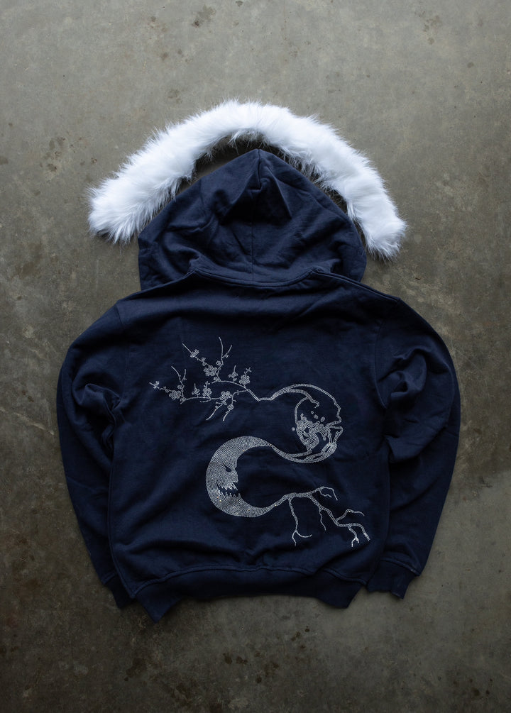 BEFORE LIGHT/AFTER SHADOW. Navy Zip-Up/Detachable White Fur