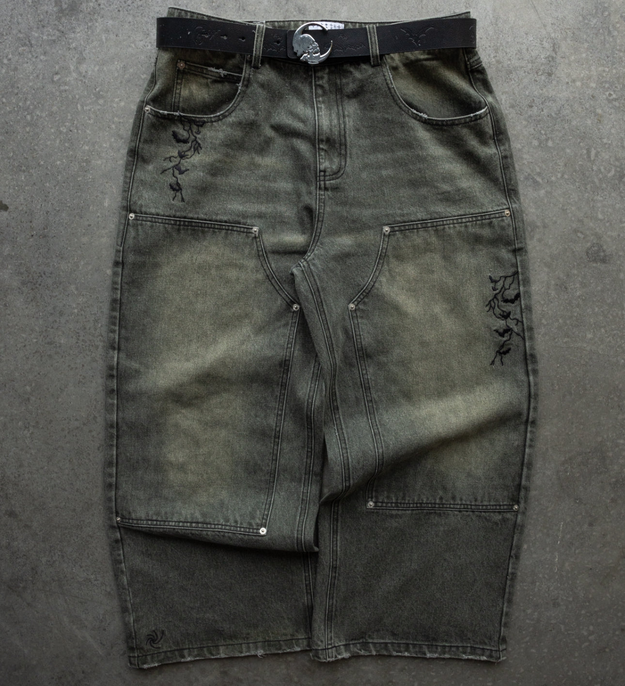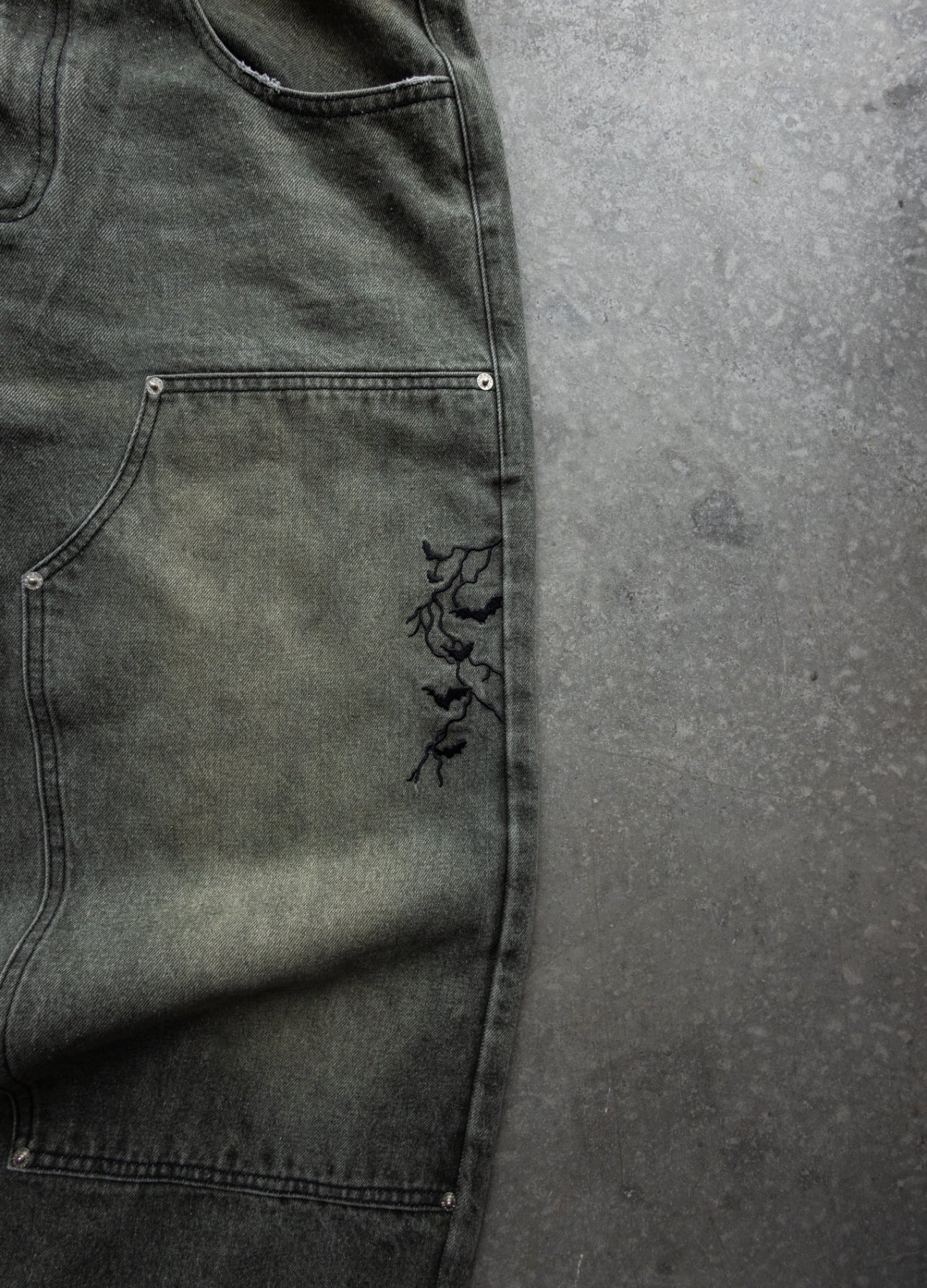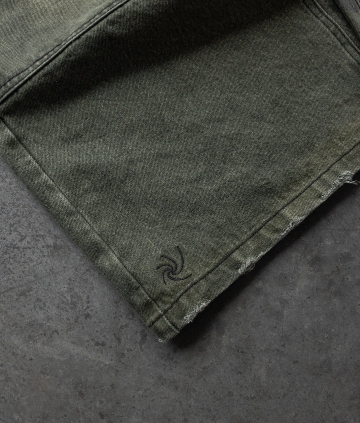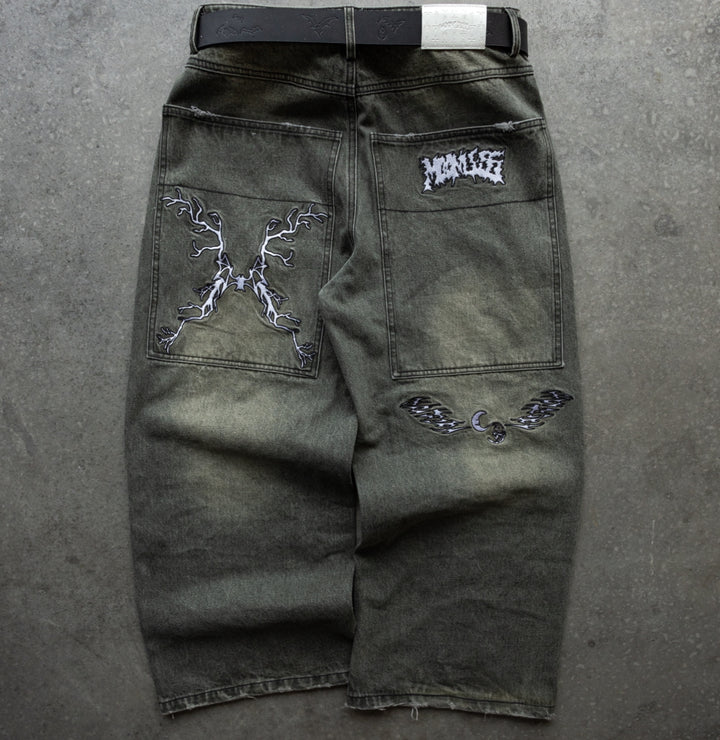 -Green Washed denim with Black sticthes and embroidery