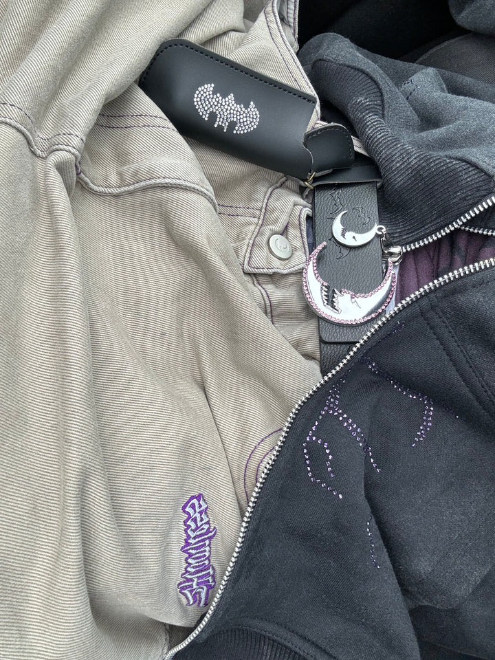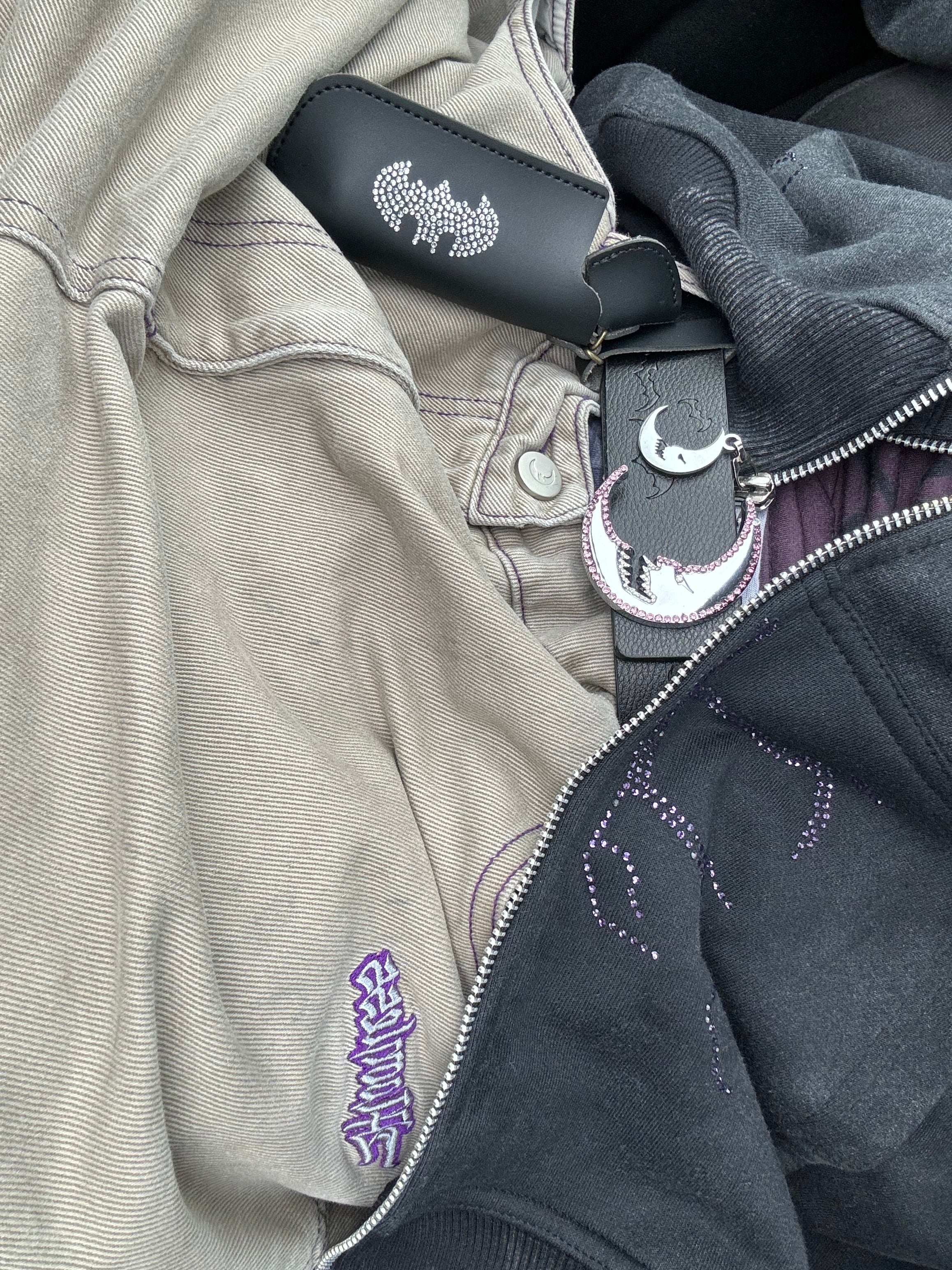 the mad moon belt features purple and white rhinestones!