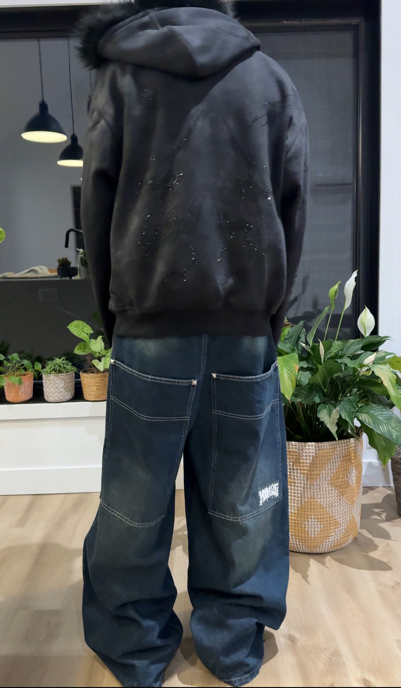 Studs on pocket, bottom of jeans and back pockets