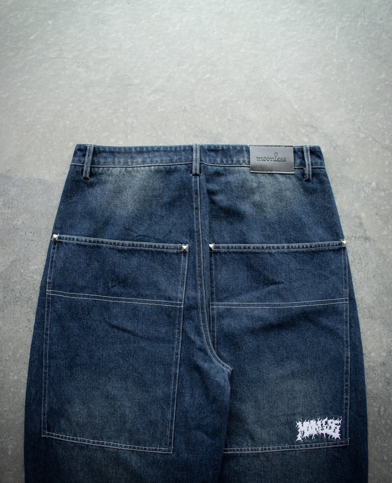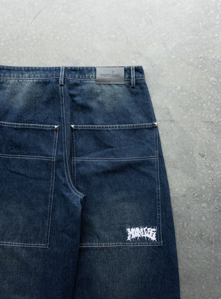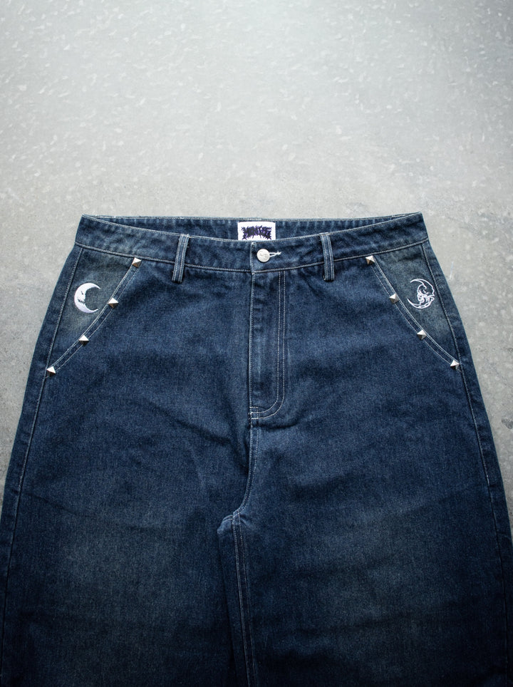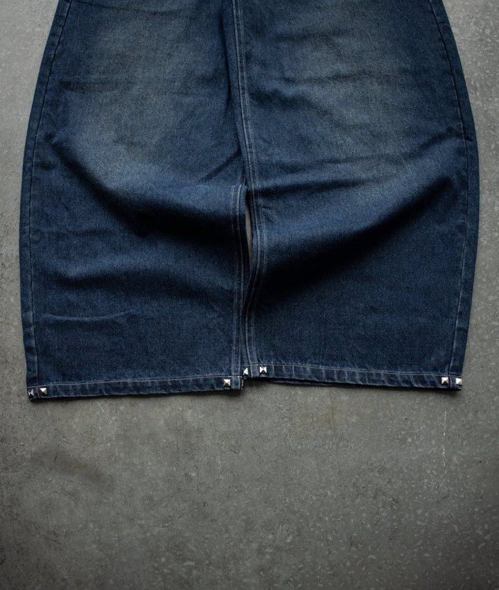 WASHED NAVY STUDDED SIMPLE Baggy Jeans